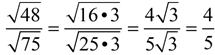 To divide square roots, divide the values outside the radicals and divide the values inside the radicals. Simplify if needed.
