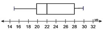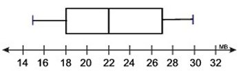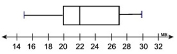 The data set 15, 18, 19, 20, 21, 21, 21, 22, 24, 26, 27, 27, 28, 29, 30 represents the number of hours students from Mr. Allen's math class spent on their cell phones during a 5-day school week.